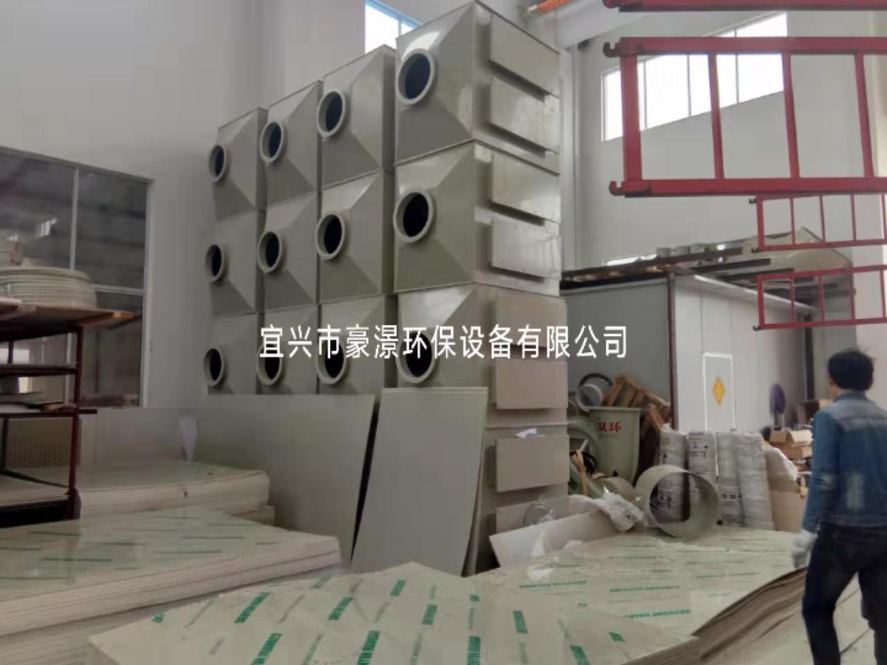 吸附气体流程:待处理的有机废气由风管引出后进活性炭吸附床,气体进入吸附床后,气体中的有机物质被活性炭吸附而着附在活性炭的表面,从而使气体得以净化,净化后的气体再通过风机排向大气(超终排出气体浓度达环保标准,净化效率95%左右);