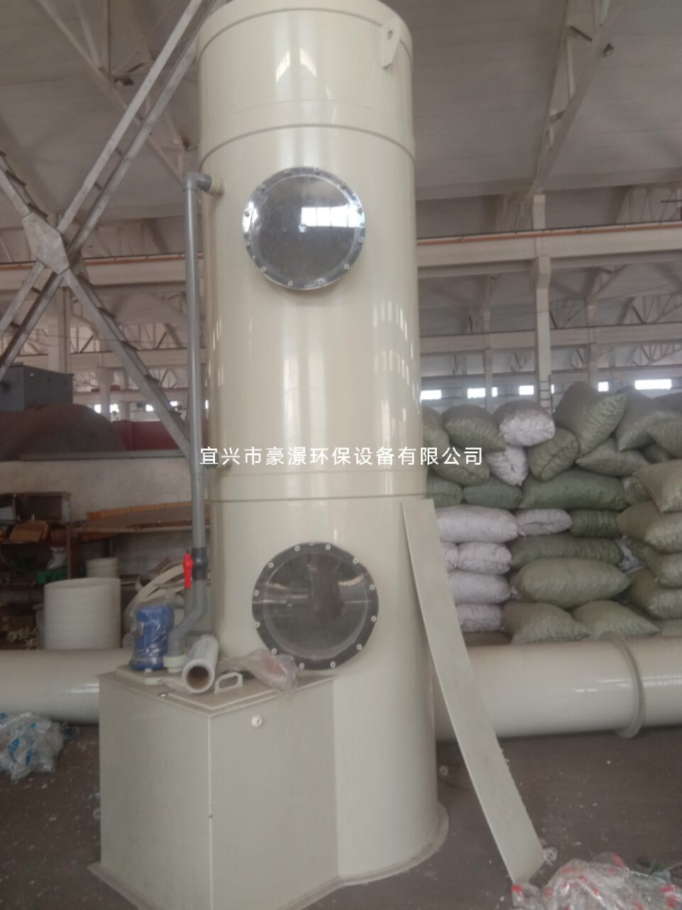 酸雾净化塔是一种使含尘气体与水进行充分洗浴作用的除尘器,酸雾净化塔结构简单,主要由主体,进气管,排气管,喷头,填料层,加药装置,水源(水池)和水浴循环系统组成。